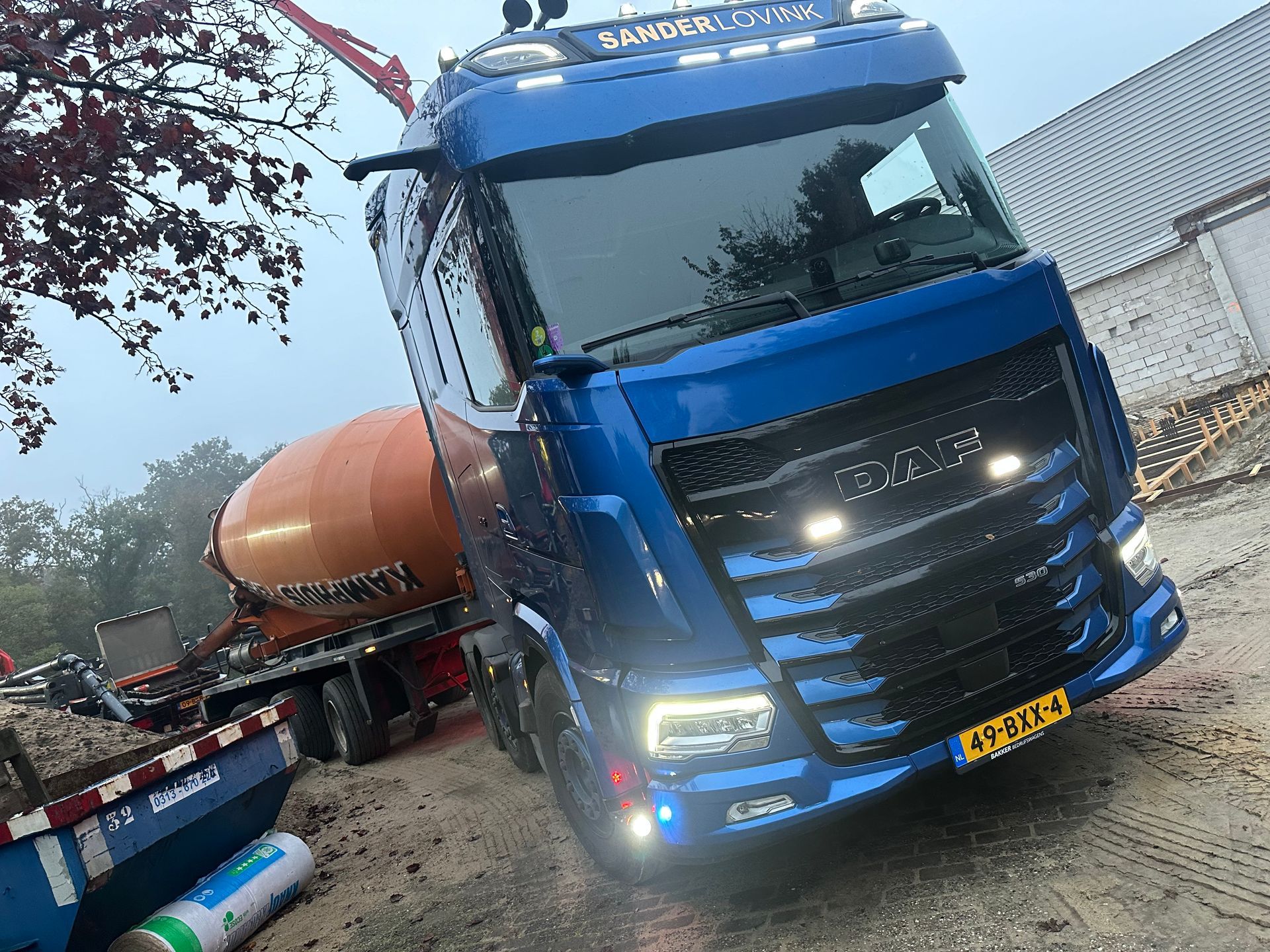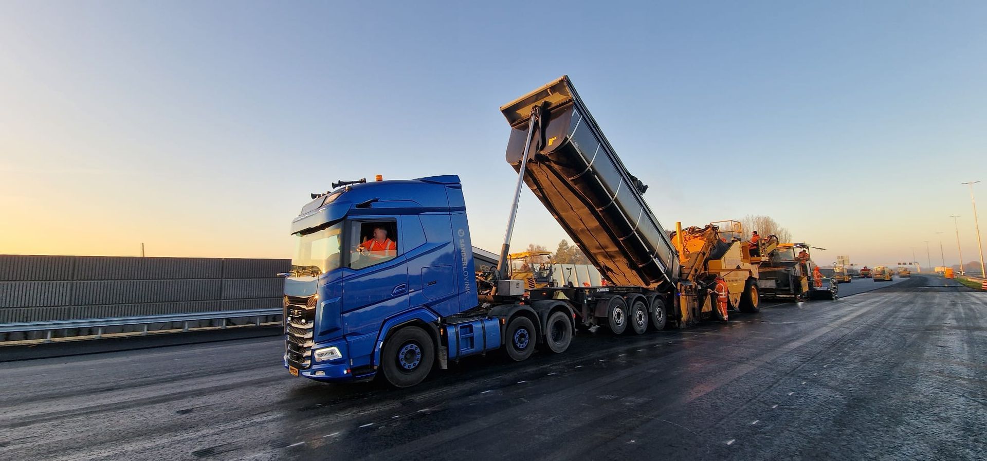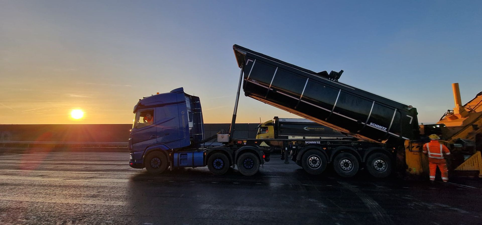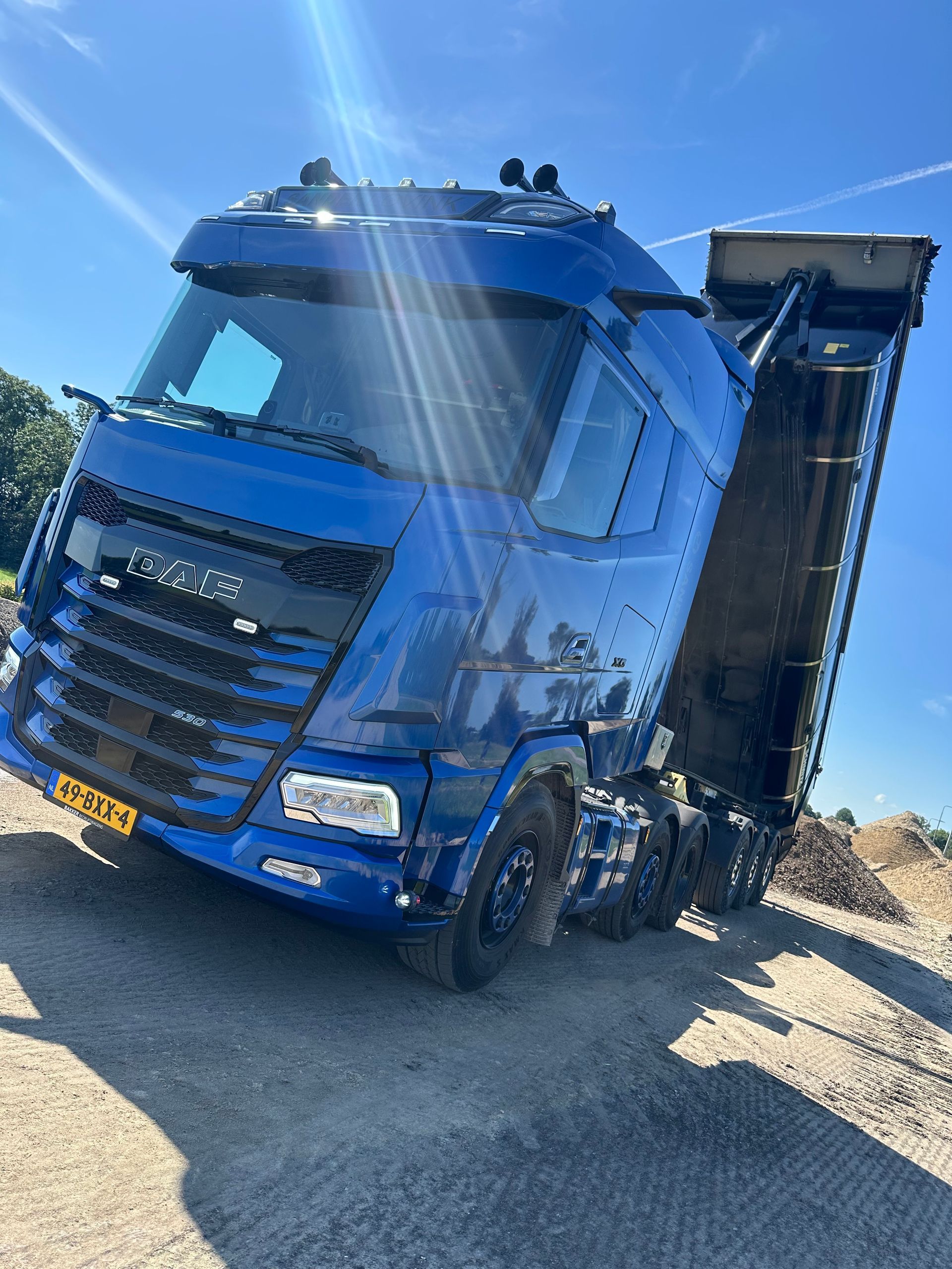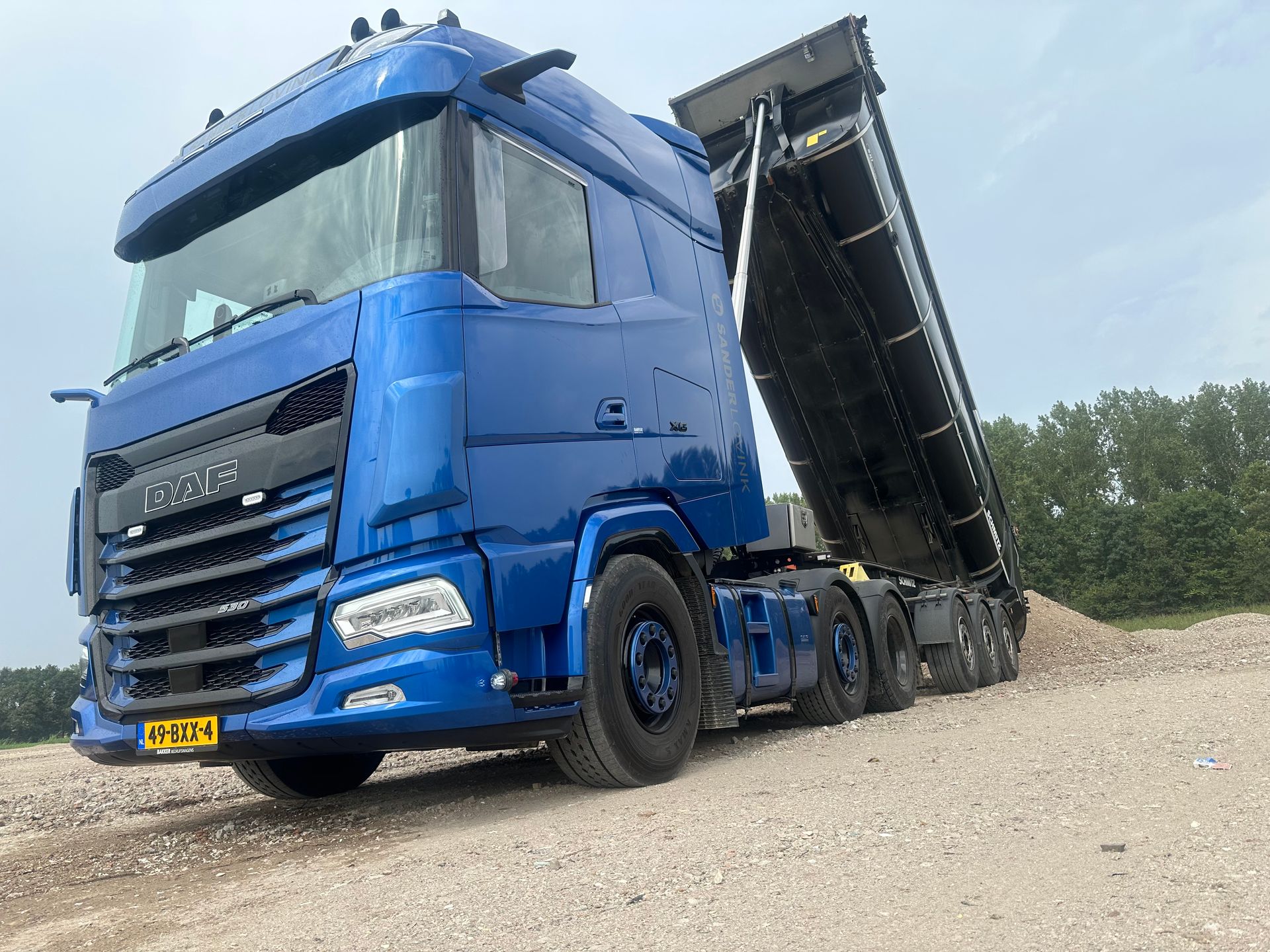 Inmiddels beschik ik over een eigen 6x2 trekker met geïsoleerde kiptrailer (volgens DIN 70001 norm), geschikt voor asfalt, zand, grind en andere losgestorte goederen.